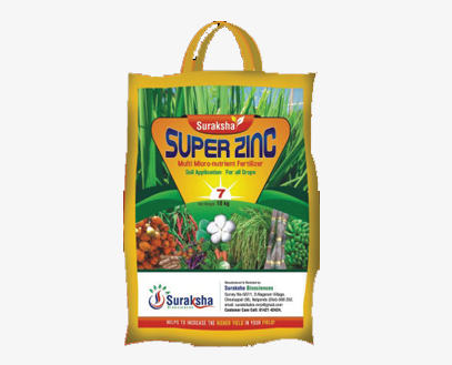 Suraksha Zinc is Zinc Sulphate Mono Hydrate contains 33% Zinc and 15% S, has the ability to totally control the Zinc deficiencies through foliar applications. Zinc in Suraksha Zinc is in monohydrate form and in powder nature, completely soluble in water. Suraksha Zinc use on agricultural crops Viz. Paddy, Cotton, Chillies, Vegetables, Sugarcane, Groundnut and Horticultural crop.